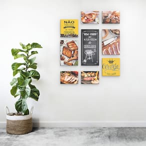 KIT 9 PLACAS DECORATIVAS Decorar a casa é sempre um momento pra lá de especial Você pode ousar na decoração e deixar sua casa ainda mais alegre e bonita com nossos kits. TAMANHO & INSTALAÇÃO Tamanho total: 64 cm comprimento X 84 cm altura 1 peça central: 20x40 cm 2 peças laterais: 20x28 cm 2 peças laterais: 20x20 cm 2 peças acima: 14x20 cm 2 peças abaixo: 14x20 cm Espaçamento entre as peças: 2 cm INSTALAÇÃO A instalação é bem simples, enviamos com fita dupla face para melhor fixação Não precisa furar a parede . Assim evitando furos e estragos na sua parede. IMPRESSÃO & ACABAMENTO Nossos quadros e placas são impressos em adesivo de alta qualidade, aplicado em MDF com espessura de 6mm. Não necessita de moldura.
