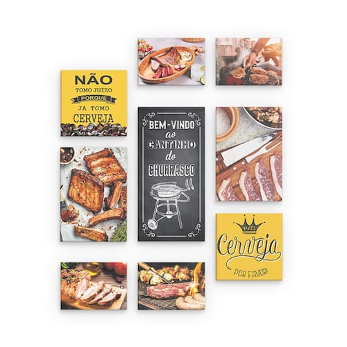 KIT 9 PLACAS DECORATIVAS Decorar a casa é sempre um momento pra lá de especial Você pode ousar na decoração e deixar sua casa ainda mais alegre e bonita com nossos kits. TAMANHO & INSTALAÇÃO Tamanho total: 64 cm comprimento X 84 cm altura 1 peça central: 20x40 cm 2 peças laterais: 20x28 cm 2 peças laterais: 20x20 cm 2 peças acima: 14x20 cm 2 peças abaixo: 14x20 cm Espaçamento entre as peças: 2 cm INSTALAÇÃO A instalação é bem simples, enviamos com fita dupla face para melhor fixação Não precisa furar a parede . Assim evitando furos e estragos na sua parede. IMPRESSÃO & ACABAMENTO Nossos quadros e placas são impressos em adesivo de alta qualidade, aplicado em MDF com espessura de 6mm. Não necessita de moldura.
