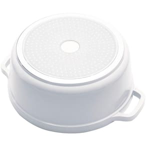 Suporta altas temperaturas, pode ir do fogão convencional e de indução direto à mesa. Em alumínio fundido e revestimento antiaderente de cerâmica, é mais resistente e reduz o uso do óleo nos seus preparos, além da sua tampa pinga gotas que auxilia no uso e na hora de servir. Lave com água e detergente neutro ou pode ser levada à máquina de lavar louças. Não coloque no micro-ondas, geladeira ou freezer.