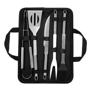 Informações sobre o kit: - Contém 5 peças: Pincel, Garfo, Faca, Espátula e Pegador - Medidas Maleta: aberta 39cm x 27cm / fechada: 39cm x 12cm x 5cm - Material dos utensílios: Aço Inox Marca: Kadê Ean: 7892435127406