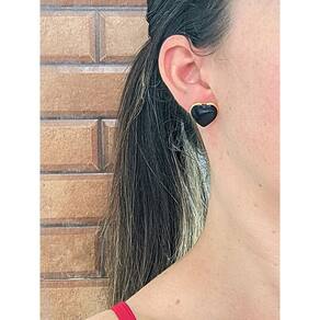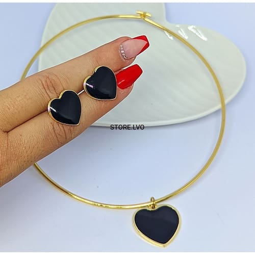 Kit Conjunto Colar e Brincos Feminino Choker aro Liso Orgânco Oval trevo Coração Liso estrela Folheado Ouro Luxo 2025 - Cor: coracao Preto
