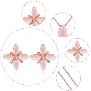 Compre Agora Kit Conjunto Colar e Par de Brincos Flores Rose Luxo