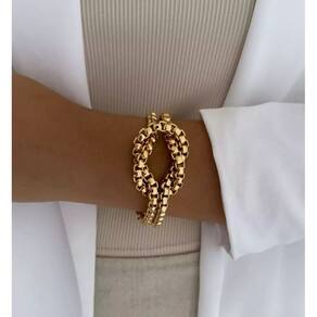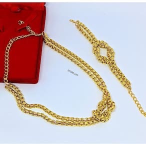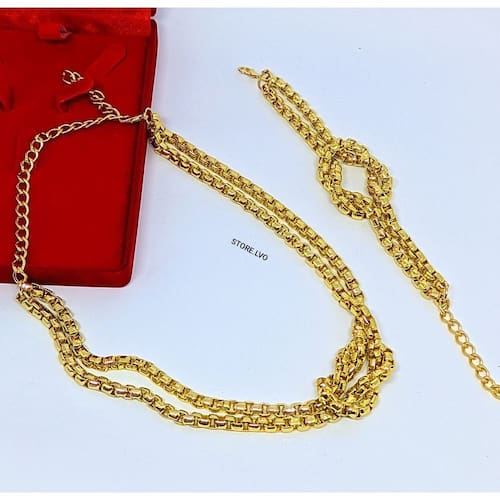 Kit Colar Choker e Pulseira Feminino modelo Elo Duplo Sinal Nó Corrente Folheado Ouro 18k Dourado com Prata Tendência 2024 luxo