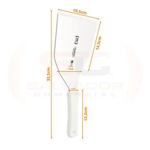 - 01Espátula para Fritura Profissional Lâmina Aço Inox 10 x 6cm Cabo Branco - Tramontina 24674185