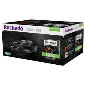 Prepare suas receitas com o conjunto de panelas Rochedo Stone Minerium Stone Pro, ideal para o uso doméstico no dia a dia. Com revestimento antiaderente Minerium reforçado com partículas minerais, oferece maior durabilidade e praticidade no preparo dos alimentos. A alta espessura do alumínio distribui melhor o calor, ajudando no cozimento mais uniforme e rápido, enquanto a base Limpa Fácil facilita a higienização após o uso. O kit com caçarola, frigideira, fervedor e panelas em diferentes tamanhos atende a diversos tipos de preparo em fogões a gás, vitrocerâmico e elétrico. A tecnologia Thermo-Sinal indica o momento ideal para selar os alimentos, trazendo mais controle e ao cozinhar.