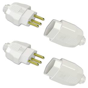 • 1 Kit Conjunto Plugue Fêmea e Macho 2P+T 10A 250Vca Branco