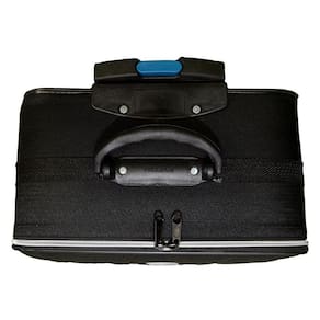 Pode ser utilizada como bagagem de mão em aviões Logo frontal Estrutura revestida com poliéster Alça de mão superior e lateral Carrinho com estágios para regulagem de altura Carrinho de alumínio Fechamento com zíper em nylon