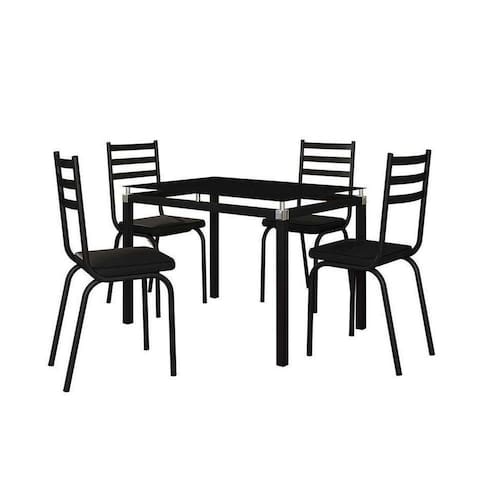 Kit Conjunto Mesa de Jantar Malva 4 Lugares Tampo de Vidro com 4 Cadeiras Preto 107CM