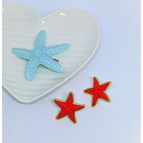 Kit Conjunto Par de Brincos estrela do Mar Resina colorido + Presilha de Cabelo bico de pato Prendedor Moda Praia Verão - Cor: Vermelho