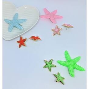 Kit Conjunto Presilha de Cabelo Bico de Pato Prendedor Grampo Estrela do Mar resinado coloridas + Par de Brincos Moda Verão
