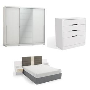 Este Conjunto era o que faltava para o seu quarto ficar mais completo. Seus móveis são produzidos em MDP e garantem qualidade e conforto para você. Acompanha 1 Guarda Roupa, 1 Cabeceira e 1 Gaveteiro.