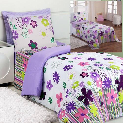 Kit Coordenado Edredom Com Lençol Solteiro Alegria - Lilás