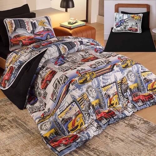 Kit Coordenado Edredom Com Lençol Solteiro Mymo - Raci - 100% Algodão