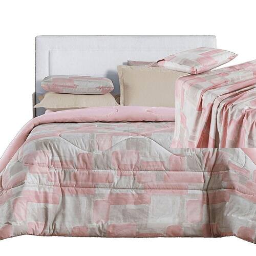 Kit Coordenado Edredom E Lençol Sensuale King Quadri 5 Peças - 80% Algodão, 20% Poliéster - Blush