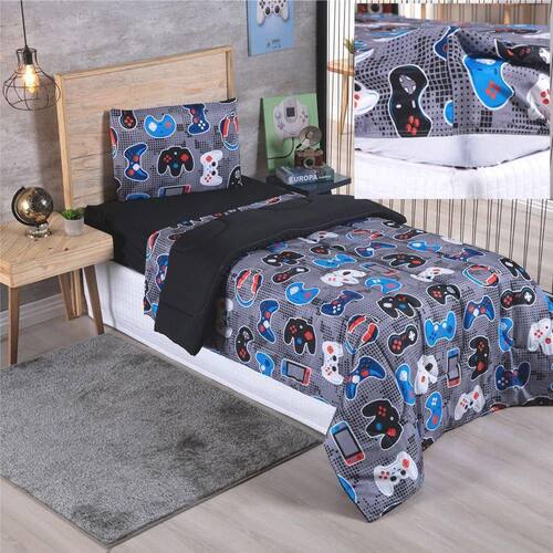 Kit Coordenado Edredom com Lençol Solteiro Alegria - Play game - 100% Poliéster Kit coordenado Edredom com Lençol Solteiro alegria com estampas vibrantes