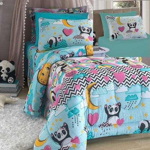 Kit Coordenado Edredom Lençol Solteiro Mymo Panda 100%