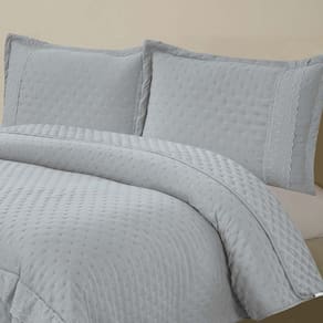 Confeccionado em Percal de Poliéster 300 Fios, o Kit Grécia proporciona um caimento impecável e sensação de aconchego durante toda a noite. O grande destaque fica por conta do delicado bordado inglês, que adiciona um toque de requinte e romantismo ao ambiente.