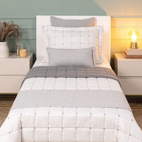 Kit Coordenado Solteiro Lavive Diana Gris - 4 Peças A combinação entre tecidos diferentes prova que para uma cama ser elegante e atemporal não precisa de muitos, apenas dos itens certos. Contém:01 Cobreleito Dupla-Face 1,80 x 2,40m 01 Porta Travesseiros Matelados com Abas 75cm x 55cm01 Almofada de Tear com Enchimento 60cm x 30cm01 Peseira de Tear 1,40m x 35cm Composição:Tecido Cobreleito e Porta Travesseiro 100% PoliésterTecido Almofada e Peseira 100% ALgodão TearEnchimento 100% Poliéster Imagem Meramente Ilustrativa Marca: Lavive Ind E Com