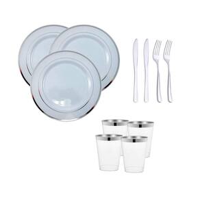 Transforme suas festas em eventos extraordinários com nosso Kit de Materiais Descartáveis de Luxo na cor prata Este incrível conjunto é a escolha perfeita para quem busca sofisticação sem abrir mão da praticidade. Por que escolher nosso Kit de Luxo: Elegância que Marca Presença: Com pratos grandes 26CM e pratos pequenos para sobremesa 15,5CM , este kit em cor prata vai garantir que sua mesa se destaque pela elegância em qualquer ocasião. Talheres Sofisticados: Desfrute de garfos, facas e colheres para refeição, todos desenhados para unir estilo e conforto, tornando suas refeições ainda mais especiais. Sobremesas Memoráveis: Adoce seus momentos com colheres e garfos para sobremesa de 10CM, adicionando um toque de luxo a cada colherada. Versatilidade Completa: Não esquecemos dos detalhes Incluímos copos de 300ml e taças de 150ml, proporcionando a versatilidade que suas celebrações merecem. Alta Qualidade, Zero Compromisso: Feito de plástico premium, nosso kit une durabilidade com a praticidade do descartável. Assim, você pode aproveitar o momento sem se preocupar com a limpeza. Seja o Anfitrião que Todos Lembram: Surpreenda seus convidados com a sofisticação deste kit. Não perca tempo, adquira agora e eleve suas celebrações a um novo patamar de estilo e conveniência Composição: Plastico