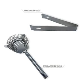 - Vem com 5 peças- Tamanho: Coqueteleira 22cm altura x 7cm diâmetro // Separador 18cm comprimento x 7cm largura // Mini copo dosador 7cm altura x 3,5cm diâmetro // Misturador 19cm comprimento // Pinça 16cm comprimento