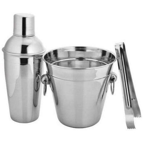 Kit Coqueteleira + Balde + Pegador Aço Inox 500Ml Art House Acessórios práticos e elegantes para elaborar desde bebidas simples até os mais sofisticados coquetéis. Receba seus convidados com estilo, preparando deliciosos drinks com este moderno e prático Kit Bar com 3 peças. Conteúdo: - 01 x Balde de Gelo diâmetro de 14 cm e altura de 12 cm - 1400 ML - 01 x Coqueteleira 500 ml - Altura sem a tampa 13,50cm - 01 x Pegador 15cm Ean: 7899658420383