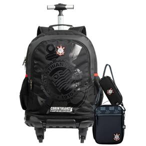 O kit é a escolha perfeita para quem quer carregar tudo com conforto e muita personalidade. Com design moderno e detalhes que exaltam o orgulho corinthiano, essa mochila une qualidade e funcionalidade para o dia a dia. Mochila de rodinha: Duplo comparimento Material macio e resistente Twill com frente em matelassê acolchoado, recortes emborrachados que conferem maior durabilidade e um toque de personalidade. Possui zíper reverso e puxadores exclusivos com a silhueta do timão Alças de ombro e painel traseiro acolchoados para máximo conforto nas costas. Compartimento interno especial para notebook, perfeito para quem precisa transportar equipamentos com segurança. Bolsos laterais em mesh para garrafas ou pequenos objetos que você quer ter sempre à mão. Forro personalizado com estampa do corinthians Base reforçada 4 rodas 360 em gel
