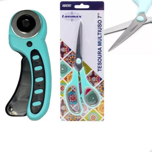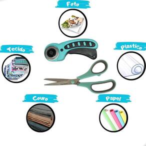 Kit Cortado Manual Mais Tesoura Multiuso 7 Pol Tecido Papel