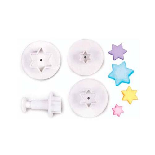 O kit ejetor estrelas é composto por 3 peças de diferentes tamanhos. Com ele você fará cortes precisos e poderá aplicar a massa diretamente na peça a ser decorada. Tudo isso com dará o acabamento ideal