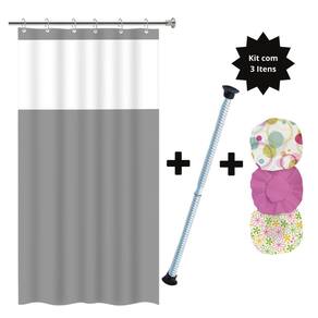 Kit Cortina Box Banheiro + Varão de cortina + 3 Toucas Cor: Cinza Kit Cortina Box Banheiro Antimofo PVC com Visor + Varão Extensível Suporte de cortina 90cm x 1,30m + 3 Toucas de Plástico para banho Transforme seu banheiro com o prático e funcional Kit Cortina para Box Banheiro Antimofo PVC + Varão Extensível Suporte de Cortina. Ideal para proteger o ambiente da água durante o banho, este conjunto combina uma cortina resistente e de fácil limpeza com um suporte ajustável para instalação simples e sem complicações. Características da Cortina: Material Antimofo: Fabricado em PVC de alta qualidade, resistente ao mofo e à umidade, garantindo maior durabilidade e higiene. Fácil de Limpar: Basta passar um pano úmido para manter a cortina sempre limpa e em bom estado. Tamanho Ideal: Cobertura ampla com visor para evitar respingos e manter o banheiro seco. Características do Varão Suporte: Extensível e Ajustável: Comprimento regulável para se adaptar a diferentes tamanhos de caixas ou espaços ajuste entre 90cm e 1,30m . Fixação sem Furos: Sistema que dispensa furadeiras, facilitando a instalação e evitando danos à parede ou ao azulejo. Material Resistente: Varão em alumínio com acabamento anticorrosivo, ideal para ambientes úmidos. Pontas Emborrachadas: Fixação segura sem riscos de danos superficiais. Características da Touca de Plástico Impermeável para Banho: Material: Plástico impermeável de alta durabilidade, resistente à água e ao vapor no banho Quantidade: Kit com 3 unidades de toucas para banho Dimensões: Diâmetro aproximado de 25cm, adequado para diferentes tamanhos de cabeça Elástico: Elástico reforçado e macio, ajustável para maior conforto e fixação sem apertar Reutilizável: Pode ser lavado e . Recomenda-se secar ao ar livre após o uso Uso: ideal para banho, tratamentos capilares e proteção contra umidade Benefícios: Praticidade Completa: Kit pronto para uso, com todos os itens necessários para a instalação. Durabilidade e Higiene: Cortina antimofo e varão resistente garantem um conjunto duradouro e de fácil manutenção. Estilo e Funcionalidade: Combina proteção contra respingos com um design moderno que valoriza o banheiro. Especificações Técnicas: Dimensões da Cortina: Aproximadamente 2m de altura x 1,40m de largura Dimensões do Varão: Por ser extensível vai de 90cm a 1,30m de largura. Conteúdo da embalagem: 1 Cortina PVC + 1 Varão extensível + 3 Toucas para banho Marca: Não Informado