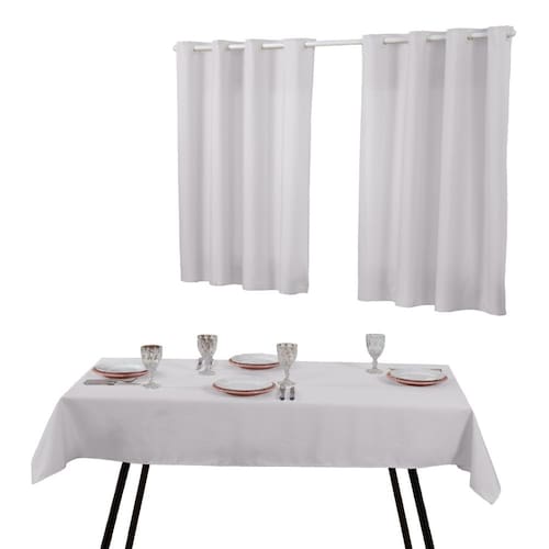 Contém na Embalagem: 1 Cortina 2,00 largura x 1,40 de altura 1 Toalha de mesa retangular para 6 lugares: 2,00 x 1,40