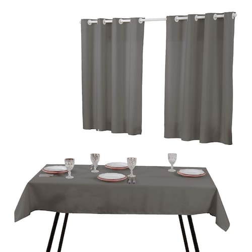 Kit Cortina Para Cozinha E Toalha De Mesa 6 Cadeiras Cinza Kit de Cozinha Cortina e Toalha de Mesa 6 lugares