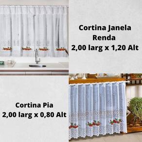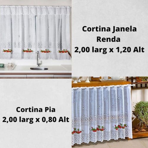 Kit Cortinas Pia 2,00 larg x0,80 Alt +Cortina de Janela 2,00 Larg x 1,20 Alt Renda Morango