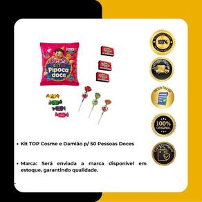 Celebre a tradição com o Kit top Cosme e Damião Com 50 saquinhos recheados de doces deliciosos e brinquedos divertidos, esse kit é perfeito para transformar sua comemoração em um momento inesquecível.