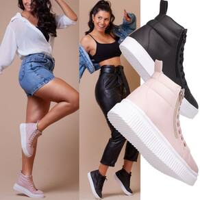 2 Botas Feminina Estilo Academia Com Solado De Borracha Descubra o Charme do Conforto para seus treinos ou passeio com nosso coturno femininoCaracterísticas Principais:Cabedal: Sintético Forro: Tecido AntibacterianoPalmilha: Confort Eva 4mmSola: Borracha AntiderrapanteAltura Da Sola baixa (preta): 3 Centrimetros Altura Da Sola plataforma (rosa): 5 Centrimetros Metais: AntioxidanteAjuste: Cadarço Fios De Algodão E Zíper ReforçadoPeso: 0.800g cada par.Atenção na hora de escolher seu tamanho, o Tênis possui FORMA NORMAL, pedir o número que já está acostumado a usar, temos aqui a abaixo uma tabela aproximada de cm da palmilha para usarem como referência.TAMANHO DE PALMILHA33 - 22.9 cm 34 - 23.2 cm 35 - 24.0 cm36 - 24.5 cm37 - 25.0 cm38 - 26.0 cm39 - 27.0 cm40 - 27.5 cmNão perca a chance de adicionar um toque de elegância e conforto ao seu guarda-roupa. Clique em "Comprar Agora" e experimente a combinação perfeita de estilo e comodidade com nossos Coturnos Femininos. Seu próximo par de sapatos favorito está a apenas um clique de distância!