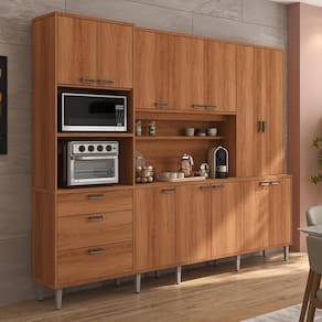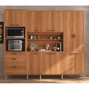 12 portas com prateleiras internas, ideais para utensílios, louças e mantimentos