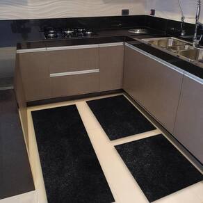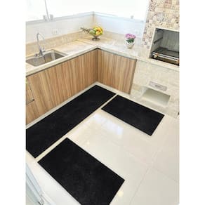 Kit Cozinha 3 Pçs Tapete Passadeira Em Carpete Aveludado Pre