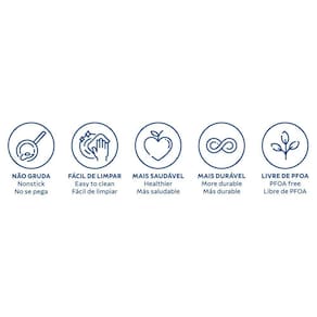 Corpo de alumínio com espessura que proporciona cozimento rápido e uniforme. Revestimento interno e externo de antiaderente Starflon Max que não gruda, é fácil de limpar, mais durável e não é prejudicial à saúde, pois é livre de PFOA. Tampas de vidro temperado com bordas de aço inox. Cabos, alças de baquelite antitérmico e pegadores de nylon que oferecem durante o manuseio. As lâminas de aço inox têm maior durabilidade do fio devido ao tratamento térmico. Os cabos de polipropileno possuem maior resistência e durabilidade. Podem ir à máquina de lavar louças facilitando seu dia a dia. Pode ser utilizada nos fogões: gás, elétrico e vitrocerâmico - resistência elétrica. 112: | Peso da embalagem do vendedor: 3880 g | Comprimento da embalagem do vendedor: 42 cm | Largura da embalagem do vendedor: 45 cm | Altura da embalagem do vendedor: 10 cm Ean: 7891112349605