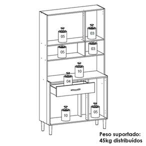 O Armário Kit Cozinha é perfeito para quem busca praticidade e estilo na organização do ambiente. Produzido em MDP de 12mm e 15mm, conta com 06 portas, sendo 01 porta superior com vidro temperado, e 01 gaveta, equipadas com dobradiças e corrediças 100% metálicas. O design conta com puxadores ergonômicos e pés fixos, ambos em plástico resistente (poliestireno e polipropileno), além de nichos decorativos. Com pintura UV, o acabamento do móvel oferece maior proteção, realce nas cores e facilidade na limpeza do dia a dia. Este móvel chegará em sua casa separado em 01 volume.