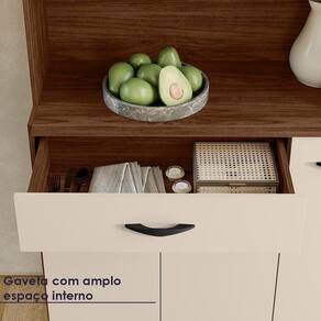 O Armário Kit Cozinha é perfeito para quem busca praticidade e estilo na organização do ambiente. Produzido em MDP de 12mm e 15mm, conta com 06 portas, sendo 01 porta superior com vidro temperado, e 01 gaveta, equipadas com dobradiças e corrediças 100% metálicas. O design conta com puxadores ergonômicos e pés fixos, ambos em plástico resistente (poliestireno e polipropileno), além de nichos decorativos. Com pintura UV, o acabamento do móvel oferece maior proteção, realce nas cores e facilidade na limpeza do dia a dia. Este móvel chegará em sua casa separado em 01 volume.