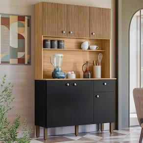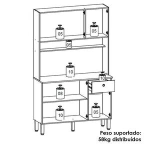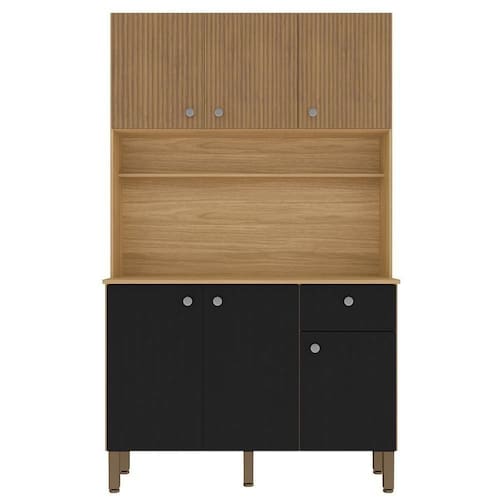 O Armário Kit Cozinha é perfeito para quem busca estilo e funcionalidade na organização da cozinha. Produzido em MDP de 12mm e 15mm, conta com 06 portas equas com dobradiças metálicas, sendo as 03 superiores com detalhe que imita ro impresso no MDP, e 01 gaveta equa com corrediças telescópicas. O design conta com puxadores em ABS com pintura inox, nicho decorativo e prateleiras internas. Além disso, possui pés reguláveis em plástico resistente, permitindo um ajuste perfeito ao piso. Com pintura UV (fosco ou semibrilho), o acabamento do móvel oferece maior proteção, realce nas cores e facilidade na limpeza do dia a dia. Este móvel chegará em sua casa separado em 01 volume.