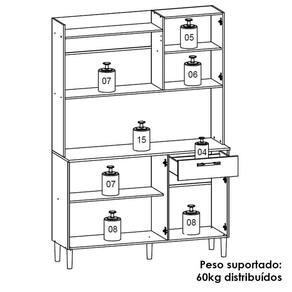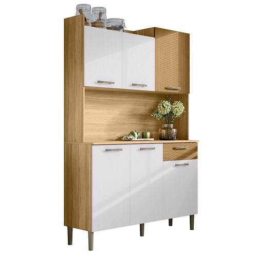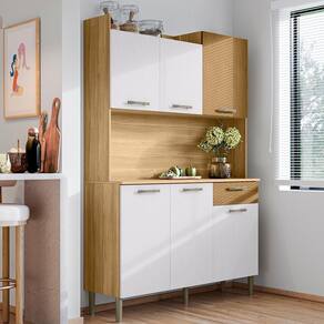 O Armário Kit Cozinha é perfeito para quem busca pde e estilo na organização do ambiente. Produzido em MDP de 12mm e 15mm, conta com 06 portas e 01 gaveta, equas com dobradiças e corrediças metálicas. O design conta com puxadores ergonômicos e pés fixos, ambos em plástico resistente, além de nichos decorativos e prateleiras internas. Com pintura UV (fosco ou semibrilho), o acabamento do móvel oferece maior proteção, realce nas cores e facilidade na limpeza do dia a dia. Este móvel chegará em sua casa separado em 02 volumes.