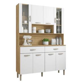 Produzido em MDP de 12mm e 15 mm, com oito portas - sendo duas portas superiores com vidro, dobradiças e corrediças 100% metálicas, duas amplas gavetas, puxadores ergonômicos em plástico resistente (poliestireno), pés fixo em plástico resistente (polipropileno).
