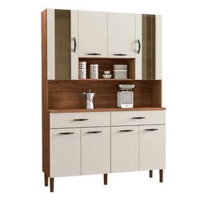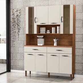 Produzido em MDP de 12mm e 15 mm, com oito portas - sendo duas portas superiores com vidro, dobradiças e corrediças 100% metálicas, duas amplas gavetas, puxadores ergonômicos em plástico resistente (poliestireno), pés fixo em plástico resistente (polipropileno).
