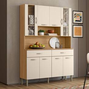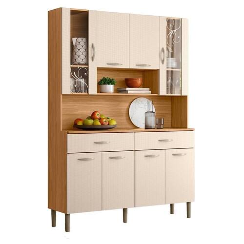 O Armário Kit Cozinha é perfeito para quem busca pde e estilo na organização do ambiente. Produzido em MDP de 12mm e 15mm, conta com 08 portas, sendo 02 portas superiores com vidro temperado, e 02 gavetas, equas com dobradiças e corrediças metálicas. O design conta com puxadores ergonômicos e pés fixos, ambos em plástico resistente (poliestireno e polipropileno), além de nichos decorativos. Com pintura UV, o acabamento do móvel oferece maior proteção, realce nas cores e facilidade na limpeza do dia a dia. Este móvel chegará em sua casa separado em 01 volume.