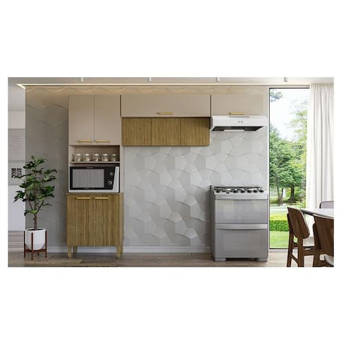 Kit Cozinha Ambiente Urbane 3 Peças Freijó Vanilla Ripado - Kits Paraná
