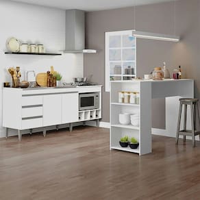 Observacoes: Nao acompanha tampo para balcao pia, pia e cooktop. Tampo possui ranhura para utilizar com cooktop, caso nao cortar pode ser utilizado normalmente como balcao Produto montado igual a imagem, nao pode alterar lado na montagem.