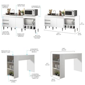 Caracteristicas do Balcao: Produzido em MDP de 15 mm Acabamento em UV Gavetas com Corredica Metalica Portas com Dobradica Metalica Puxadores Perfil em ABS Pes Reguladores com 17 cm em ABS