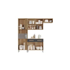 Cozinha Juma Produzido em MDP de 15mm e 12mm de espessura, proporcionando resistência e durabilidade. Amplo espaço interno, garantindo maior firmeza ao móvel. Puxadores de MDF dando maior resistência. Dobradiças metálicas dando maior durabilidade e resistência ao abrir e fechar as portas. Acabamento em verniz texturizado fosco e verniz brilho nas portas, garantindo a conservação do móvel, além de manter a beleza constante oferece ao móvel, resistência e durabilidade prolongando a vida útil do produto.