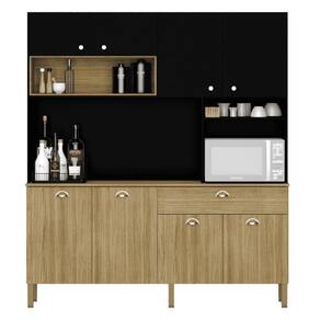 Uma das grandes vantagens da Cozinha Core é a facilidade de instalação e montagem rápida, sem a necessidade de furar a parede para fixação. Além disso, ela apresenta padrões de cores em alta no mercado, como o elegante padrão Freijó aplicado no balcão inferior e no nicho recuado superior. Os padrões Vanilla e Nero, cores neutras que transmitem modernidade, juntamente com a textura DOT exclusiva Kits Paraná, são aplicados nas frentes e na estrutura da parte superior da cozinha. O padrão Supremo, um branco com textura amadeirada, também está disponível.
