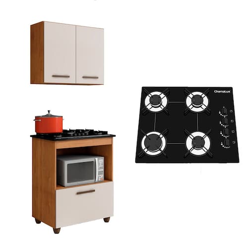 Kit Cozinha Balcão Armário Salvia e Cooktop 4 Bocas Chamalux - Bivolt